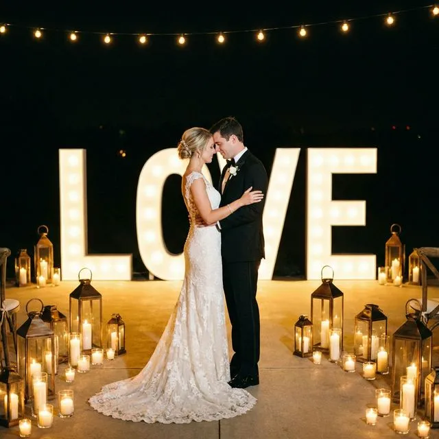 From breathtaking sunset proposals to grand reception entrances, our signature illuminated letters provide the perfect frame for your "I do" moment.
